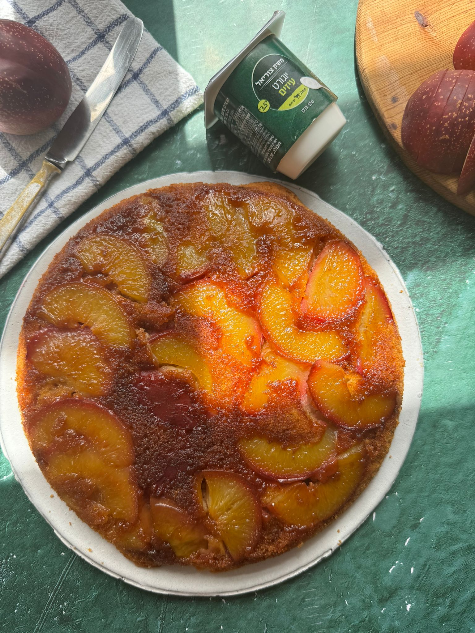 TAG עוגה בחושה, עוגת יוגורט, עוגת יוגורט נקטרינות וקינמון הפוכה שהיא וואו, עוגת נקטרינות, עוגת פירות, עוגת קינמון