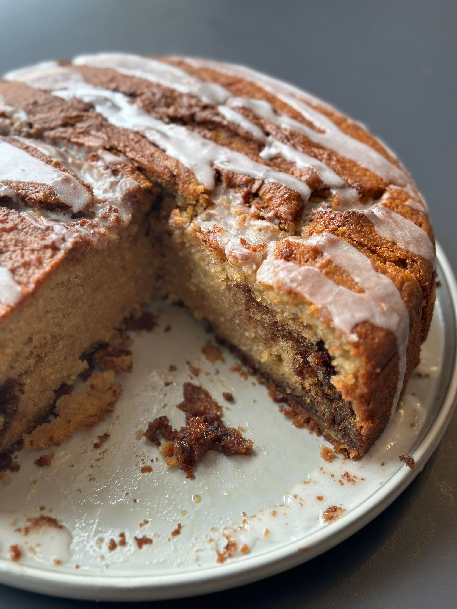את העוגה מכינים עם מלית קינמון כמו של עוגת שמרים, האמריקאיים קוראים לזה cinnamon roll cake